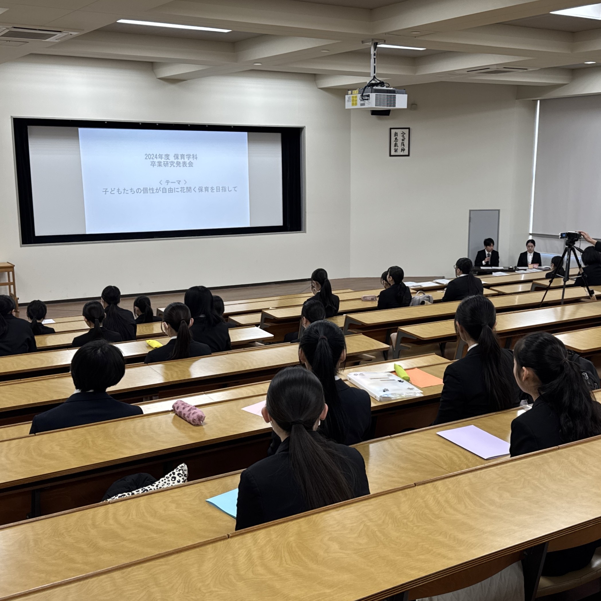 卒業研究発表会の全体テーマは,学生によって決定されます.今年度のテーマは「子どもたちの個性が自由に花開く保育を目指して」となりました.