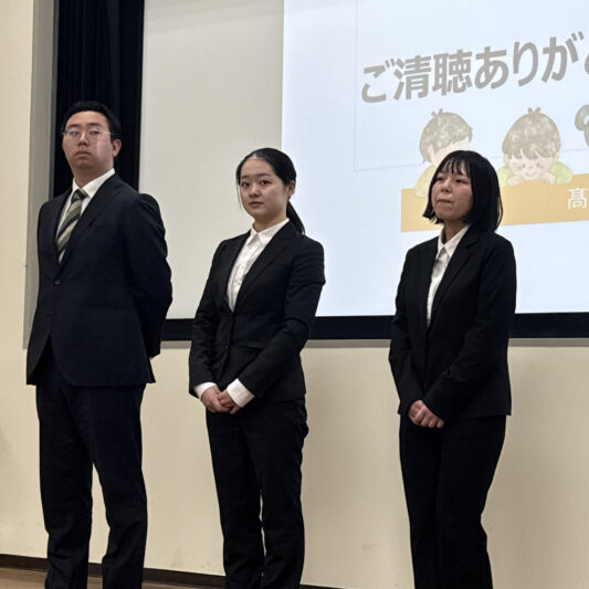 午後はゼミごとに分かれて2年生と1年生合同の分科会,そして閉会式が行われました.冨永学科長より「短い2年間の短大生活の中で、とても仕上がった研究発表でした.皆さんが日々の出来事を丁寧に考えて過ごしてきた成果だと思います.」という総評を頂いた他,来賓からの講評として手嶋先生より,「2年生は,自分が勉強してきたことを現場で活かしてほしい,1年生は自分が勉強したいことをしっかり見つけてほしい.」という激励もいただきました.