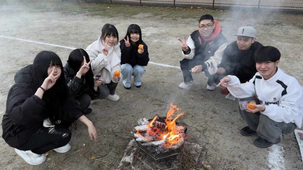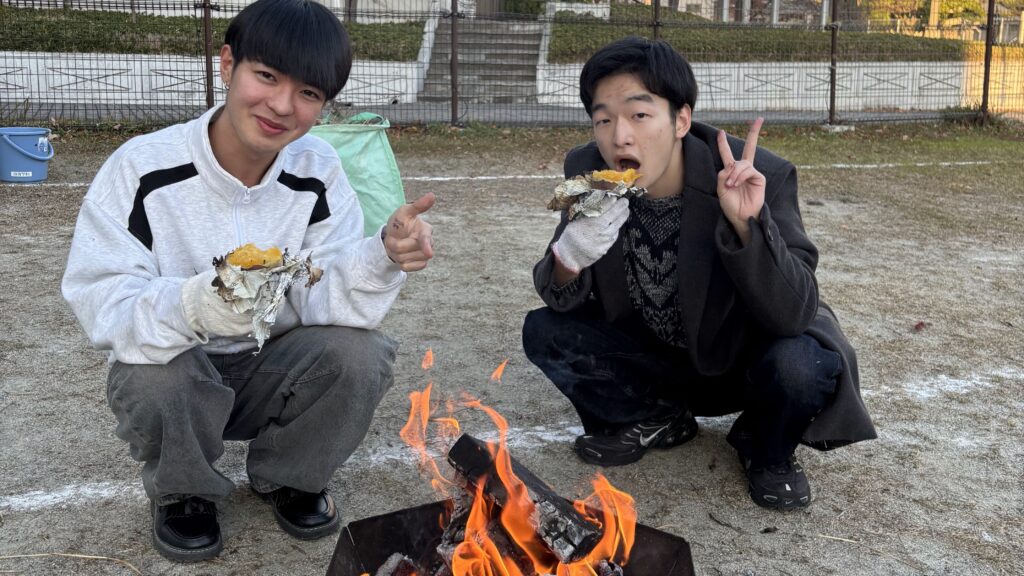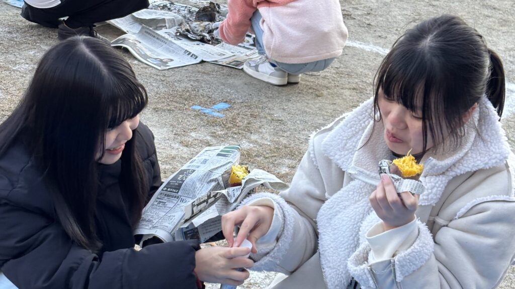 2025年12月9日(火)、本学グラウンドにて毎年恒例の焼き芋会を行いました。