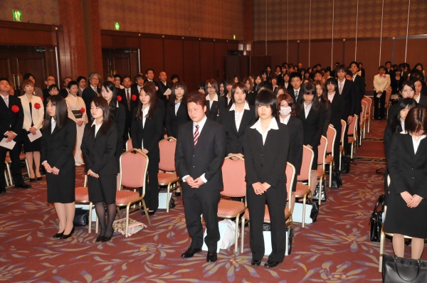 桜が満開を迎えた4月4日、ヒルトンシーホークホテルにて入学式が行なわれました。