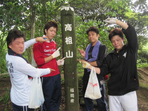 さすがに、健康スポーツコミュニケーション学科の男性4名のゼミ生だけのこともあり、高祖山までの距離約2kmを一般登山者の登頂時間を10分ほど早く到着しました。