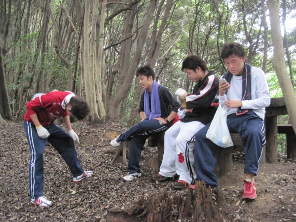 そこから、10分の休憩後、ゴールの野外活動センターに向けて足を運び、最後の力を振り絞り頑張りました。これまでの途中、他の登山者と出会い、挨拶を交わし、登山者としての仲間意識が増幅された感がありました。ゴールすると楽しんで頑張った達成感を4名の仲間とともに味わい、ゼミ活動での1ページにしてくれたものと確信しました。