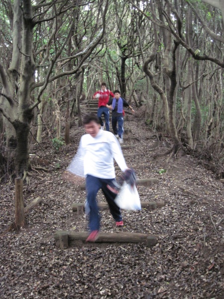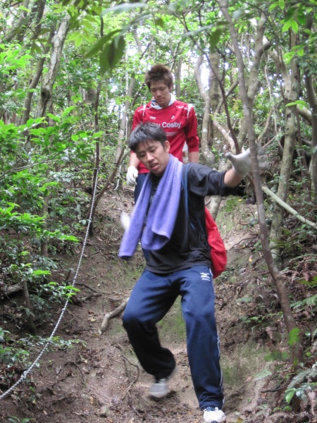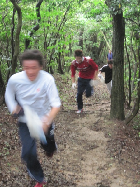 高祖山(416m)頂上からゴールの野外活動センターまでの3時間15分かかりました。頂上からのスタートはまだまだ元気いっぱいで、下り坂では走ってみせるようなはしゃぐ姿がありました。