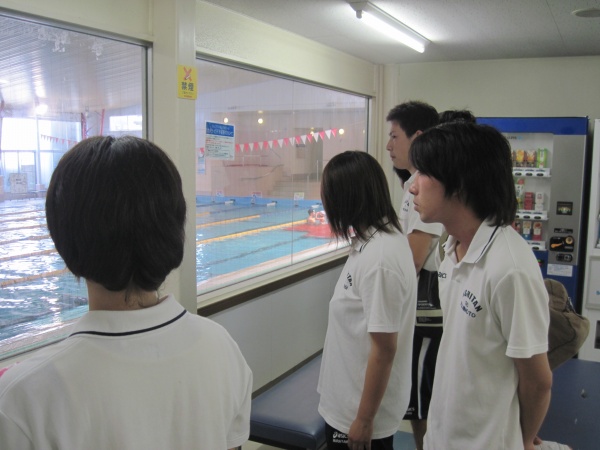 「スポーツクラブNAS北天神」は休館日に授業でプールを使用させていただいていますが、研修当日はお客様への対応も見学できました。