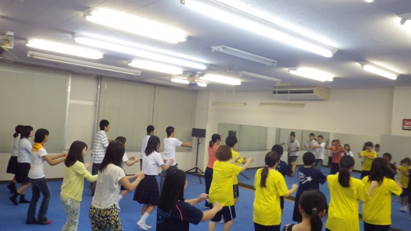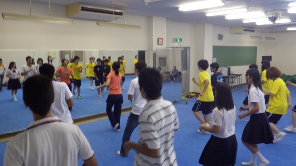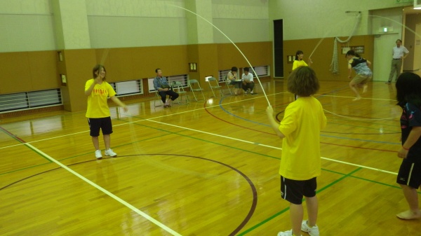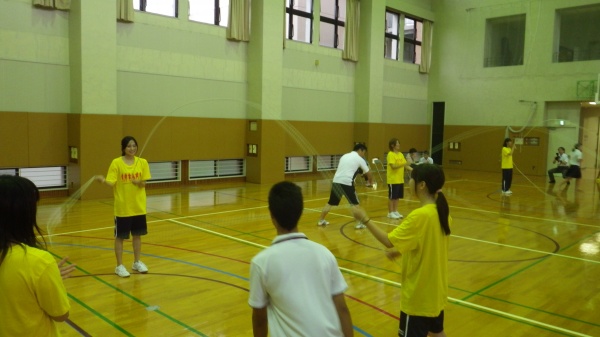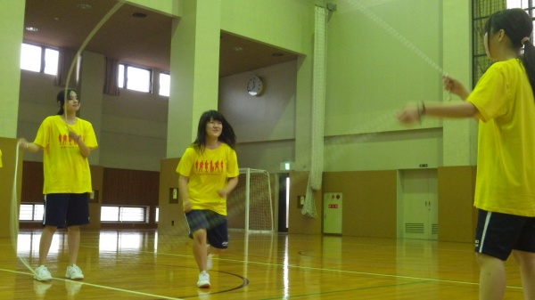 その後、午前中は恒例のダブルダッチ披露 & 体験とエアロビックダンス体験を行いました。ダブルダッチでは、1年生を中心としたメンバーが基本的動作を披露してくれました。体験の時間は10分間ほどでしたが、参加者のみなさんたちの上達ぶりには驚かされました。エアロビックダンス体験では、またまた福迫さんに登場していただき、現場さながらの雰囲気で実践していただきました。エアロビの楽しさだけでなく、インストラクターとしての魅力も伝えていただけたように感じています。