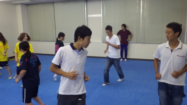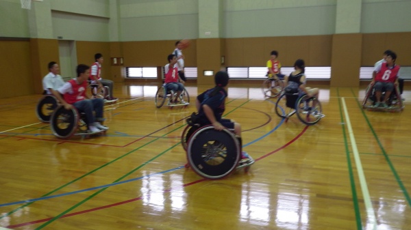 昼食後は、ジョギング & ランニングと車椅子バスケットボールを行いました。ジョギング & ランニングは、バルセロナオリンピック女子マラソン代表で本学非常勤講師の松永由水先生にお願いしました。先生の選手時代の体験談を聞かせていただいたり、ジョギングのフォームや消費カロリーを高めるトレーニング法など、深~いところまで教えていただきました。車椅子バスケットボールでは、高木先生のご指導により、車椅子の操作法などの基本的動作からゲームまで行いました。初めて体験した方がほとんどだったと思いますが、障害者スポーツの魅力を感じていただけたことと思います。