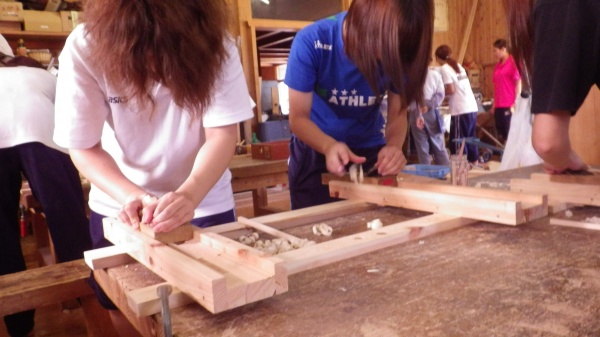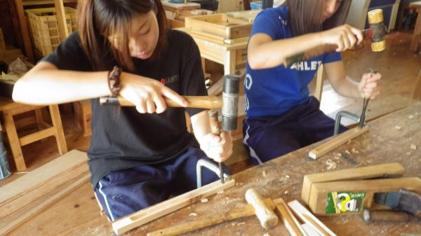 カンナやノミを初めて手にする学生がほとんどで、おぼつかない様子でしたが、出来上がっていく作品に真剣に向き合う姿は、日頃見ることがない姿で新鮮でした。