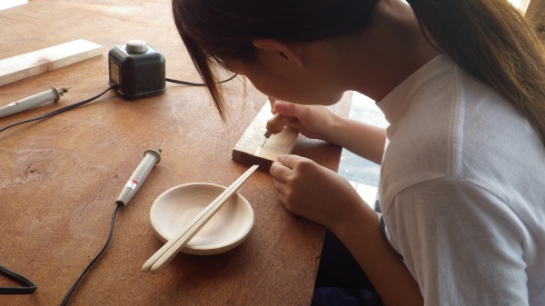 出来上がった箸や皿は実習期間に使用し、ゴミの削減に努めました。