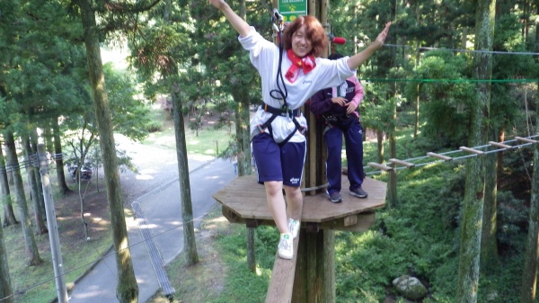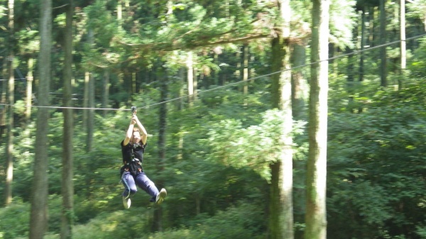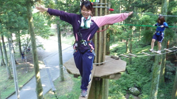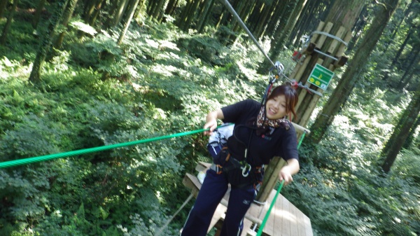 アクティビティに入る前に講習を受け、そのとおりに実践すれば安全対策は万全で、私は心底楽しめました。ただ、高所恐怖症(気味)の方は大変かもしれません・・・うちの学生の中からもリタイア者が出ました・・・