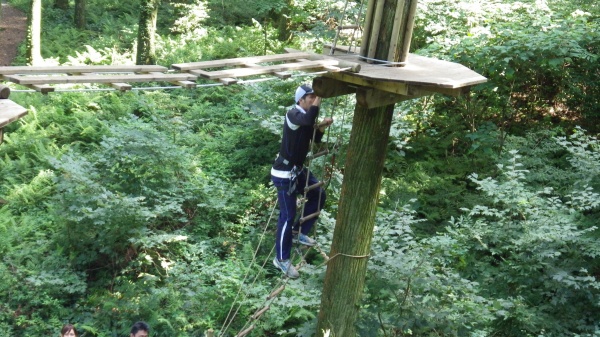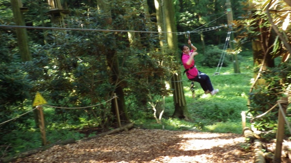 最近人気のフォレストアドベンチャーの特徴は、自然の立ち木をそのまま利用し、木の上に作られたプラットホームと呼ばれる足場に登り、そこから別の木へ空中を移動していきます。40ほどのアクティビティがあり、所要時間に個人差はありますが、3時間ほど楽しむことができました。