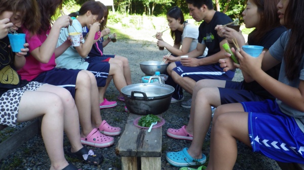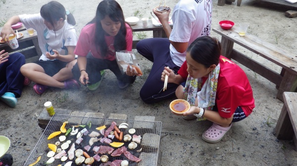 登山から戻り、夕方からバーベキューを行いました。全員がこの時間を待ちわびていた?かのようでした(笑)