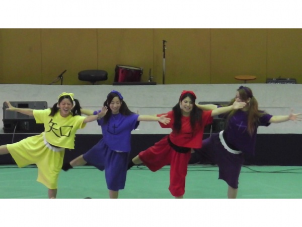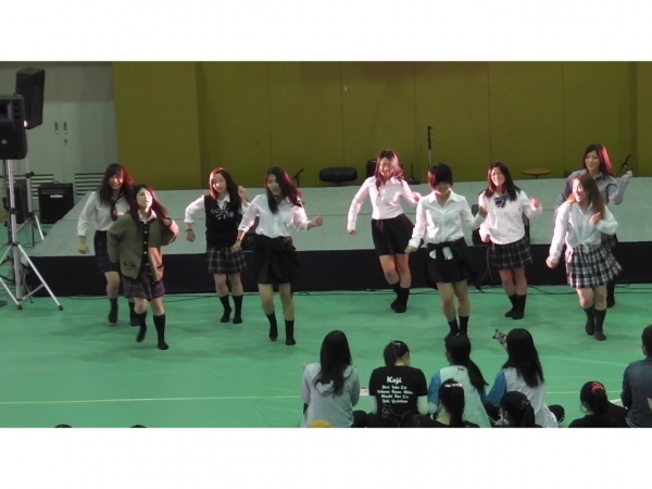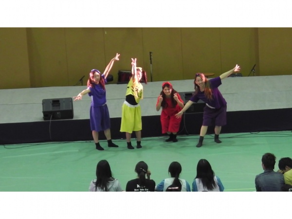 左上から2つずつ、ミニモニ・きゃりーぱみゅぱみゅ・AKB48です。短い練習期間でしたが、チームワークでカバーできましたね。みなさん、なりきることができてましたよ。