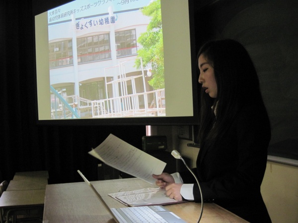 スポーツクラブで実習をした6名が5日に発表し、スポーツショップ・幼児体育分野・障がい者スポーツ施設等で実習を行った6名が19日に発表をしました。