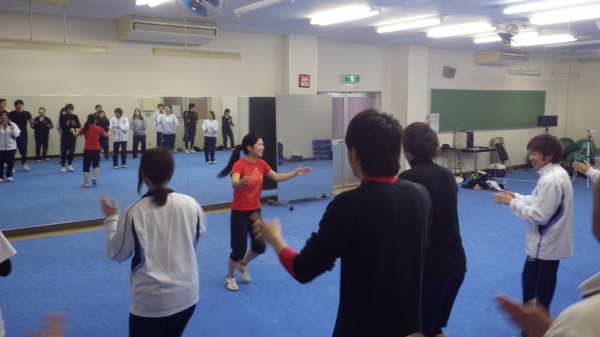 ADI受験生たちのパフォーマンス披露と1年生の資格取得への動機づけを主たる目的として、4人の受験生が合計60分のエクササイズプログラムの指導を行いました。