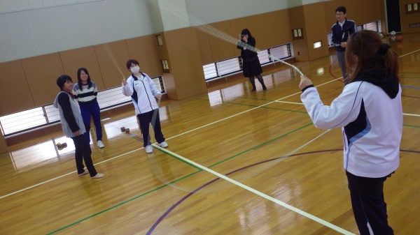 ・ダブルダッチ披露、体験→学生の取り組みを紹介しました