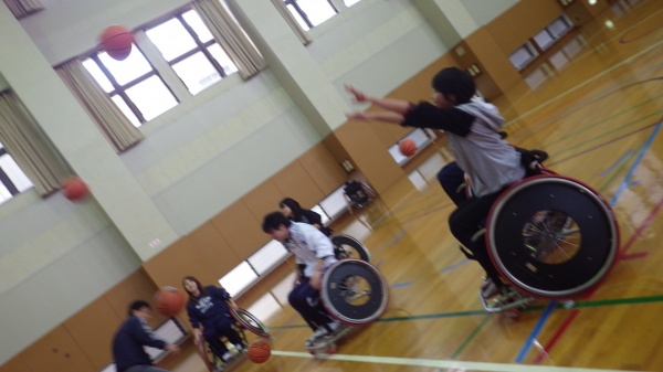 ・障害者スポーツ体験(車椅子バスケットボール)→健スポで恒例の体験!