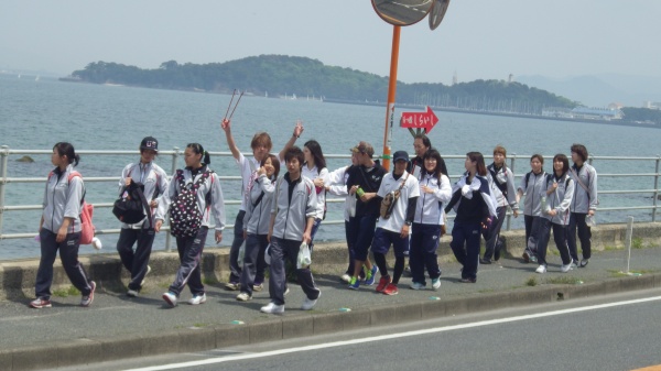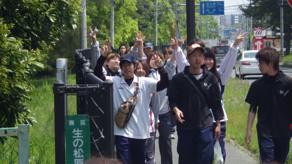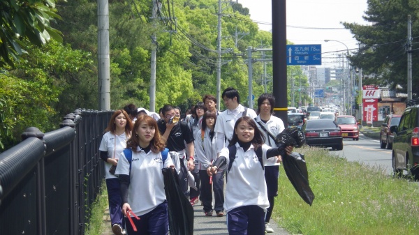 例年、二丈キャンパスをスタートし福浜キャンパスをゴールとしていましたが、今年は福浜キャンパスをスタートし、筑前深江駅を目指して歩きました。また、ゴミ拾いを行いながら歩くことにも初めての取り組みました。