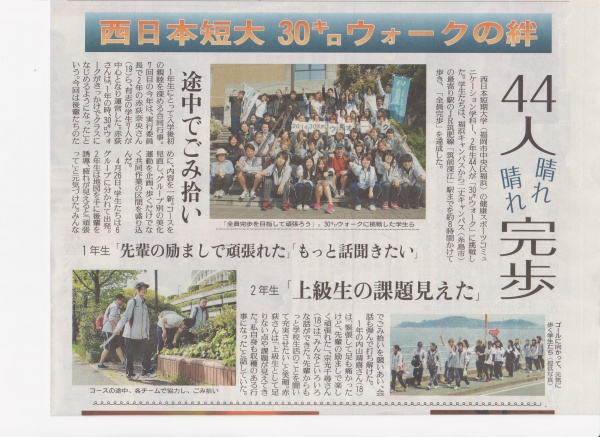 Posted on : 2014年5月28日 By ogawa お知らせ 4月26日に開催しました30kmウォークの記事が、5月24日付けの読売新聞・福岡西かわらばんに掲載されました! 是非ともご覧ください!! 5月24日(土) 読売新聞 福岡西かわらばん