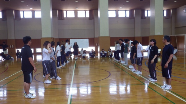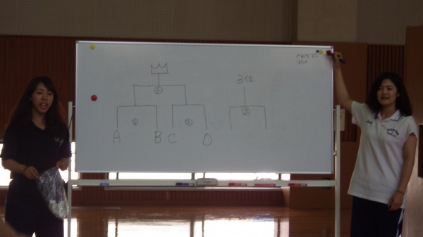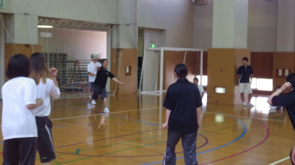その後、ドッヂボールにうつりました。ドッヂボールでは、制限時間の中でゲームを行い、1年生がコート内に多く残っていたチームが勝利というルールでした。ドッヂボールでも先輩、後輩に関わらずたくさんのコミュニケーションをとることができ、とても楽しい時間となりました。