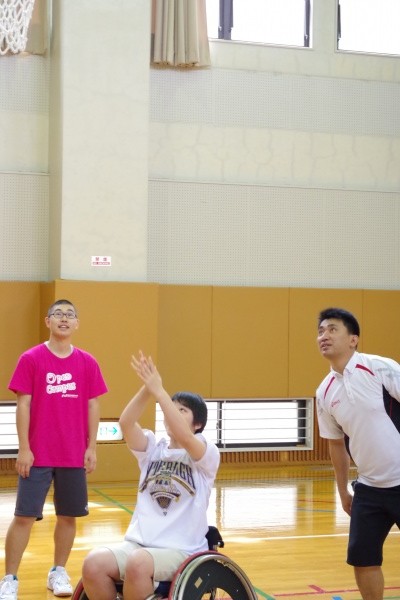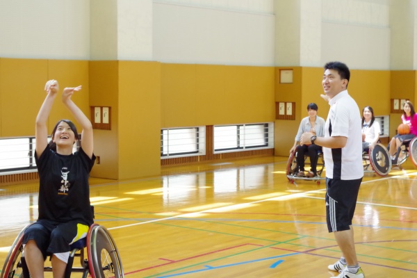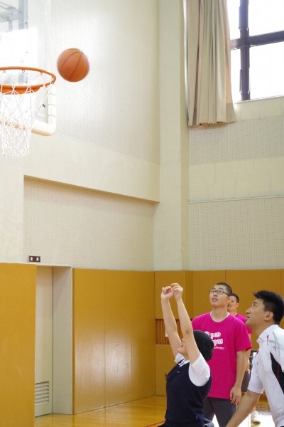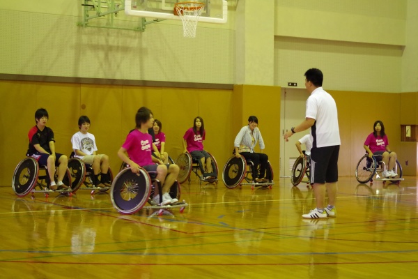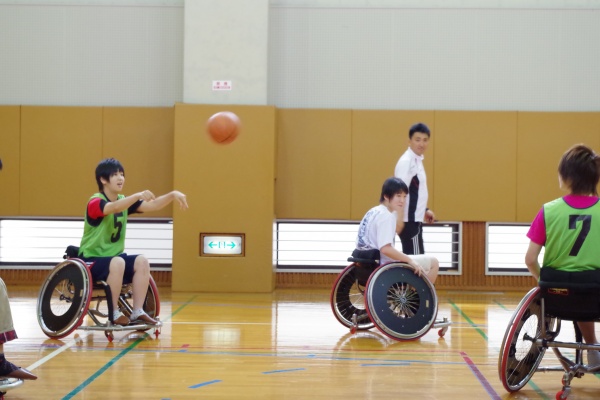 恒例の車椅子バスケットボールでは乗車体験、シューティングを行い、その後にゲームを楽しみました。