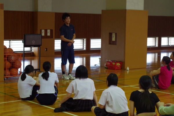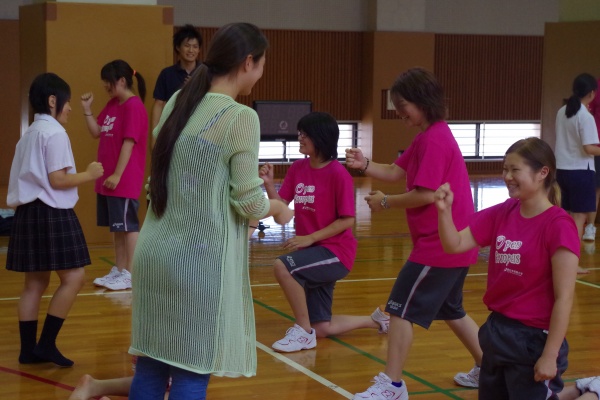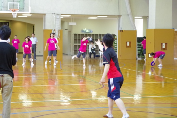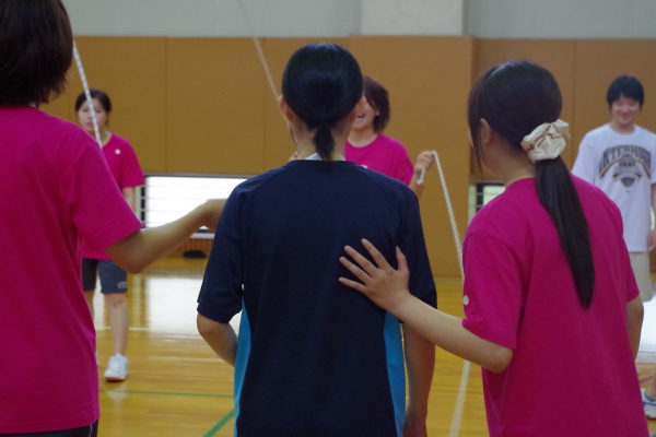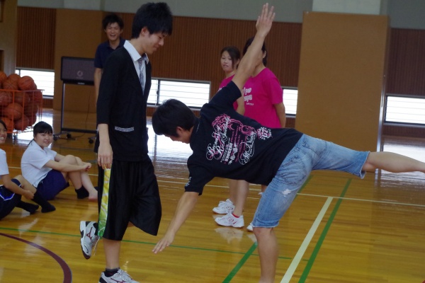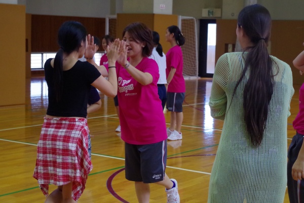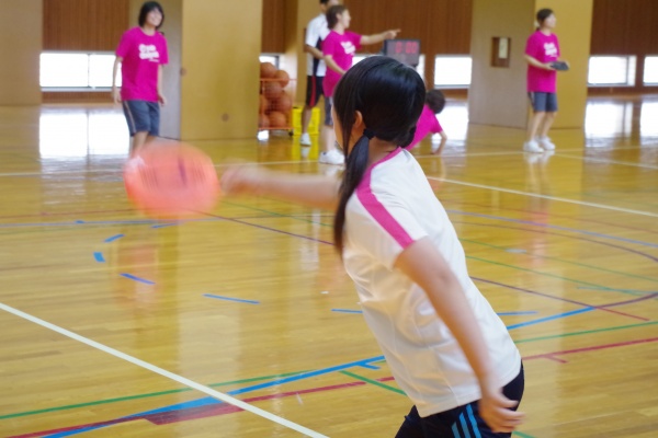 レクリエーションスポーツでは、本学科卒業生でキッズスポーツの現場で活躍されている五嶋さん(平成24年度卒)をお招きし、日頃、子どもさんたちに指導されていることを実践していただきました。