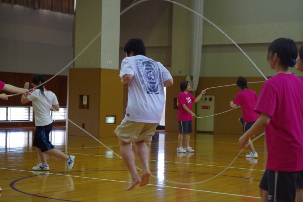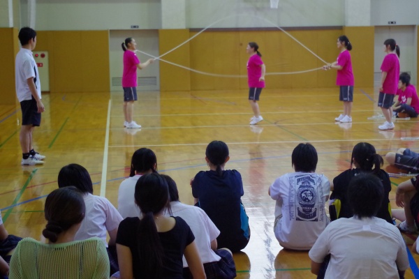お昼は学食にてランチをとっていただいた後に、午後の部では、まずダブルダッチ披露&体験を行いました。
