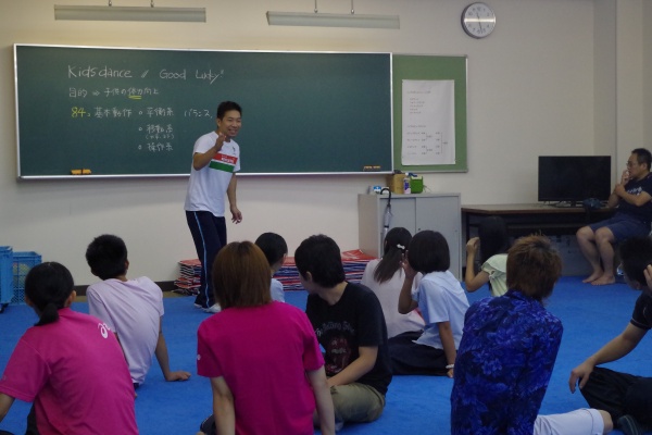 キッズダンスでは、『GOOD LUCKY!!!!!』のリズムに合わせて、瞬発力、柔軟性、敏捷性、平衡性などの体力要素を存分に取り入れたダンスを実施しました。ご来場いただいた高校生のみなさん、そしてサポート学生が一体となって非常に楽しい雰囲気で体を動かす事が出来ました。