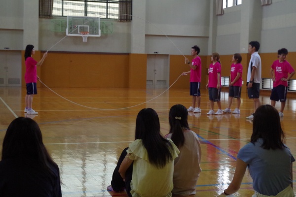 午後の部の初めには、学科概要の説明とダブルダッチの体験を行いました。