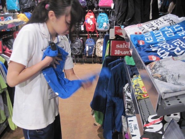 最後に、スポーツショップであるスーパースポーツゼビオ福岡木の葉モール橋本店でがんばりました本郷さんです。広い店内では挨拶はもちろん、商品の整頓、陳列状況の確認、バックヤード(倉庫)の整頓、館内アナウンスによるスタッフ呼び出しなどに取り組みながら、バスケットボールの部署とシューズを担当しました。この期間で彼女は、1番は笑顔で接客、2番は商品知識と学習してきたようです。