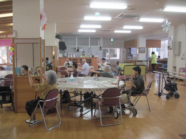 次に、近年需要が増えている高齢者施設の一つデイサービス実習に、今別府さんが地元宮崎で取り組みました。実習前半は社会福祉法人ときわ会のグループ施設である特別養護老人ホームや有料老人ホーム、デイサービスでの各施設の役割とそれらのスタッフである介護福祉士や作業療法士、運動指導者などの連携を学習しました。彼女は1年生の夏にボランティアとして夏祭りに参加したこともあり、より深くこの施設が理解でき行動できたようでした。