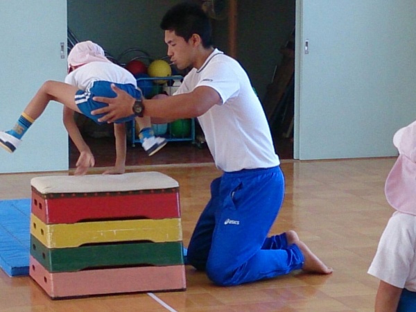 今では、子ども達の事を一番に考え、指導にあたる毎日です。子ども達と一緒になって、鉄棒の逆上がりや跳び箱、マットなどにチャレンジすることが、私の活力源になっています。