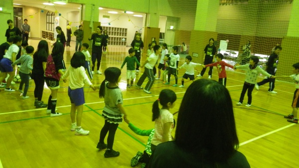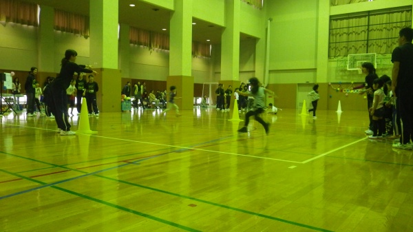脳と体の動きを調和させるのがコーディネーショントレーニングであり、10歳くらいまでにこうしたトレーニングを行うと運動神経が良くなると言われています。後半にはゲームも行われ、会場が一体となってこのプログラムを楽しみました。