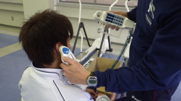 まずは、専用の機器を用いて腋(わき)の下の体温(腋窩温)、舌下温、鼓膜温を測定してみました。