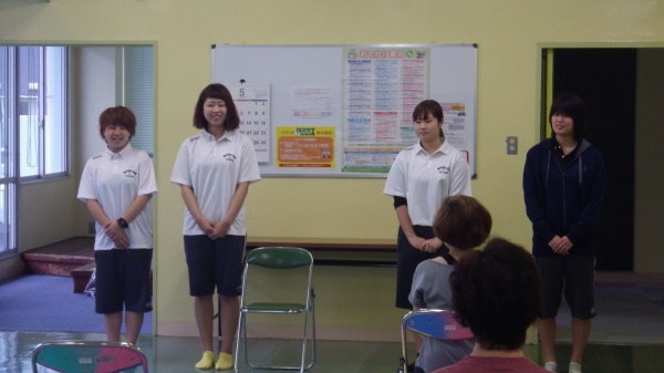 直前まで緊張した面持ちだった二人ですが、指導中には参加して下さったみなさんに運動の”楽しさ”を伝える喜びを感じているように見えました。インストラクションを行った山邉さん、合志さんはとても自信になったようです。