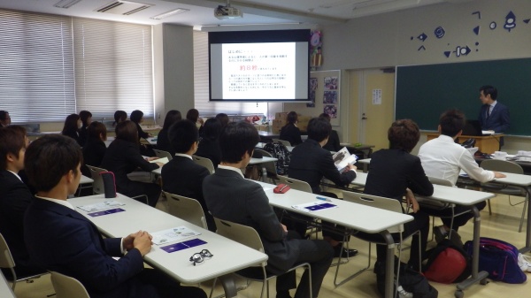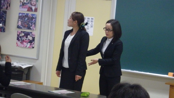 私たち1年生は、5月21日(木)のキャリア演習Ⅰの時間に「スーツの着こなし講座」を受講しました。