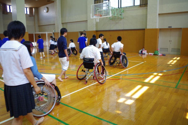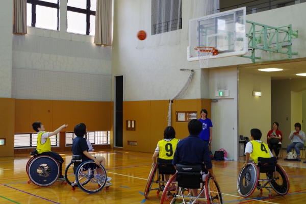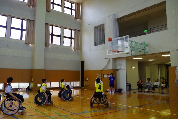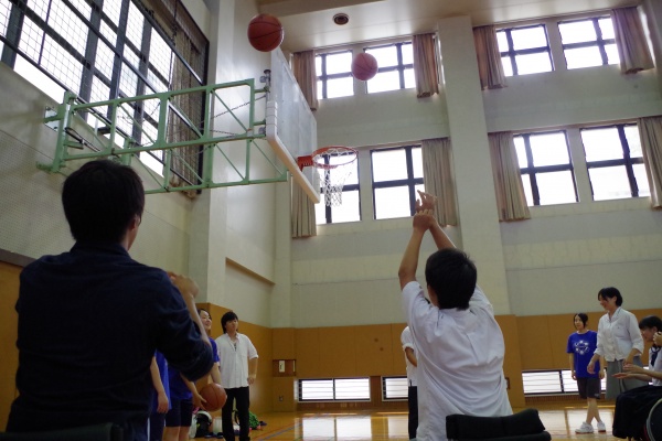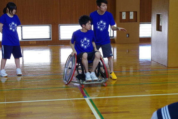 その後は高木ゼミのみなさんによる、車椅子バスケットボール体験が行われました。