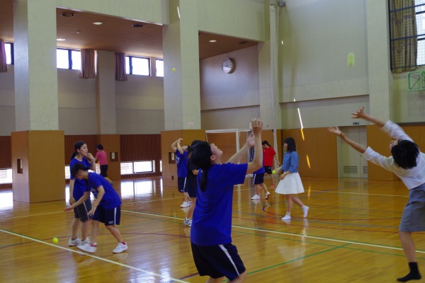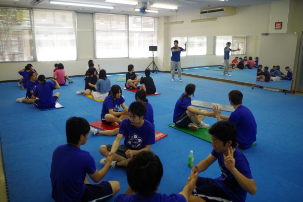 その次は、高木ゼミのみなさんによる運動あそび。ボールやドッヂビーを使ってキッズ向けの運動を体験していただきました。
