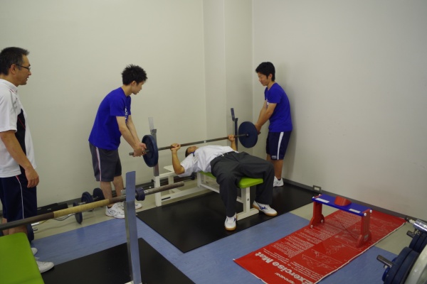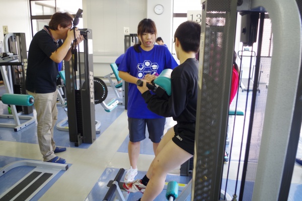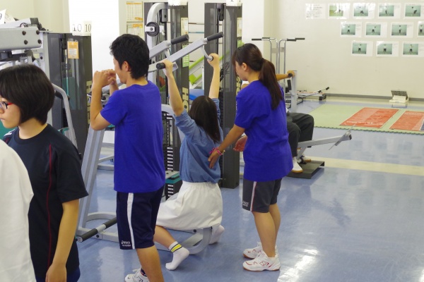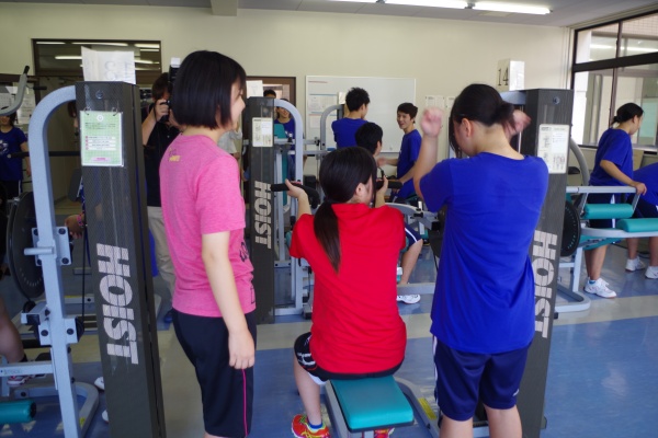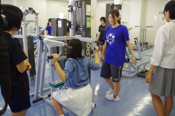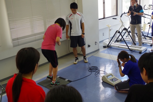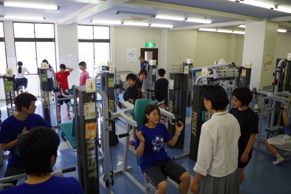 最後は体力測定&マシーントレーニング体験。体力測定ではステッピングカウンターで敏捷性を測定しました。