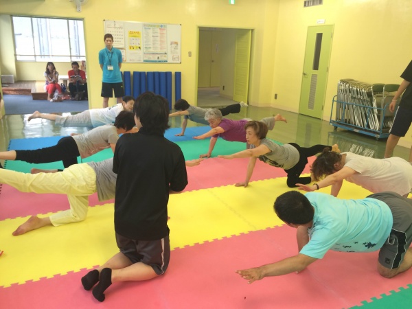 はじめのうちはみなさん楽しそうにされていましたが、少々テンポが早かったためでしょうか、各動きを繋げてゆくと難しそうにされている方も数名いらっしゃいました。対象者に適した指導をすることの重要性を学ぶことができました。