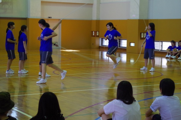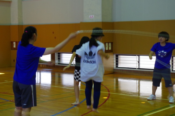 まずは、『ダブルダッチ披露&体験』。参加してくださった方々の多くはダブルダッチは初めてという方がほとんどでしたが、みなさん上達が早い!「八の字」「ターナーチェンジ」という技まで挑戦しました。