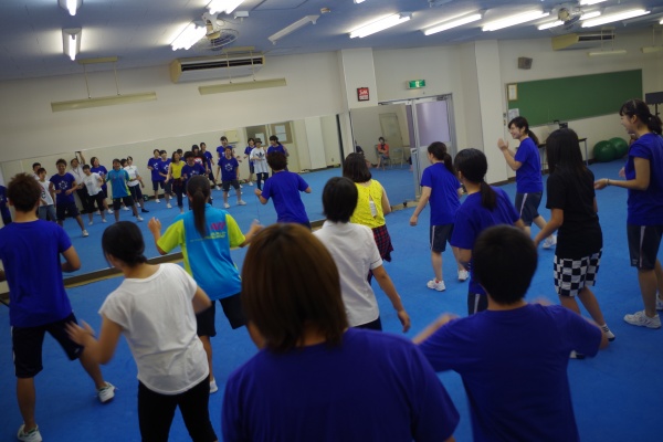 昼食をはさみ、午後の一つ目のプログラムは府内ゼミの学生による『ヒップホップダンス』を体験していただきました。ダンスに縁がない人にとっては敬遠しがちなヒップホップダンスですが、苦手な人でも取り組みやすいプログラムになっており、みなさんで楽しむことができました。