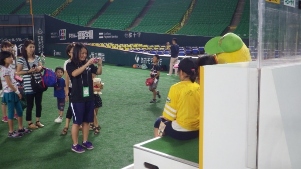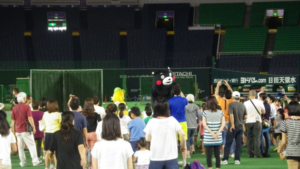 8/26にはホークスキャラクターのHOCKくんの他、スペシャルゲストとしてクマモンが登場!クマモン体操も行われ、会場は多いに盛り上がりました。