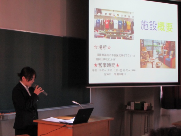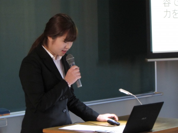 この日は「幼児体育」・「病院(リハビリ施設)」・「障がい者スポーツセンター」・「高齢者施設」・「スポーツショップ」で実習に取り組んだ7名による報告が行われました。