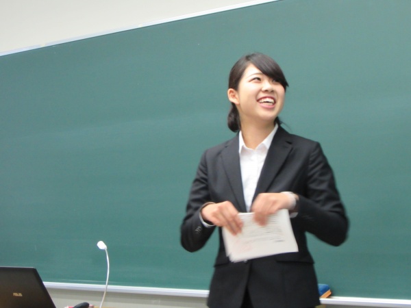 お客様が自分のことを気遣ってプレゼントをくださったエピソードを話してくれました。自分から積極的に行動し、自分で課題を見つけて仕事に取り組むことが社会人として重要であることに気付いたようで、これらを日々の学生生活で実践すべきと話ししてくれました。
