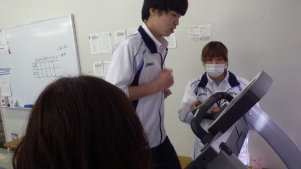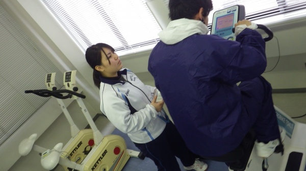 運動中の生理学的変化を実験を通して学んできたこの講義も、いよいよまとめの段階に入り、最後の実験となった1月14日にはグループで興味のある研究課題について測定を行いました。