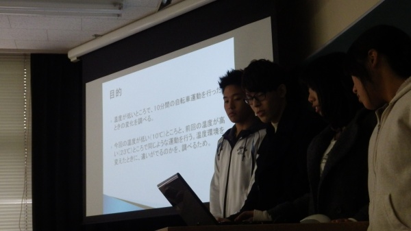 25日(月)に行われた身体運動科学演習では、最後のまとめとしてグループ実験の発表会を行いました。