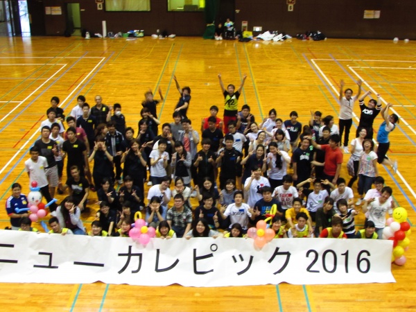平成28年6月26日(日)、福岡市城南体育館において第13回目を迎える『ニューカレピック』が開催され、星子ゼミの学生が参加しました。これは、福岡県のレクリエーション・インストラクター資格の養成校になっている大学、短期大学、専門学校の学生が指導するイベントになっており、学校間の交流と指導力の向上を目的としています。