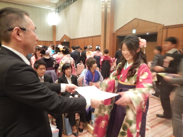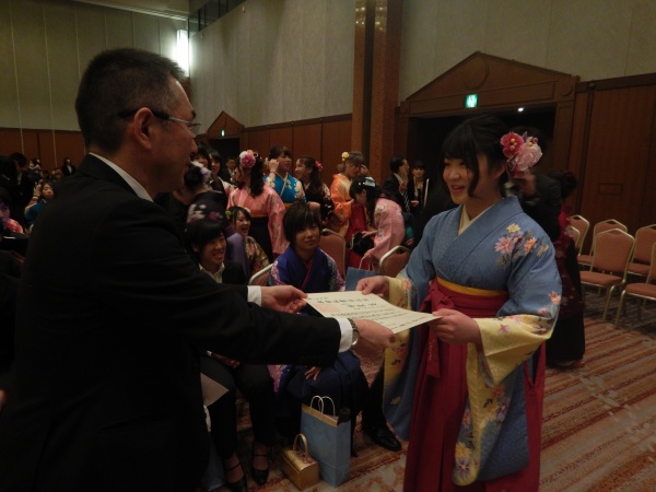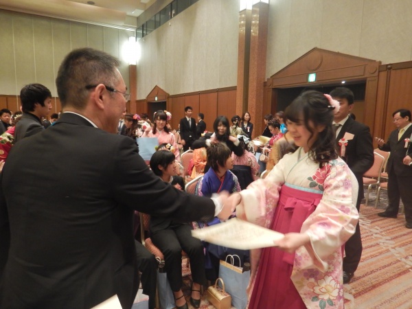 その後は、松波学科長から1人ずつに学位記が手渡されました。