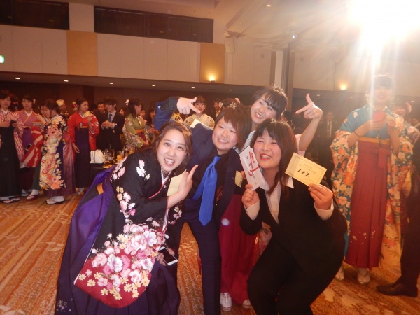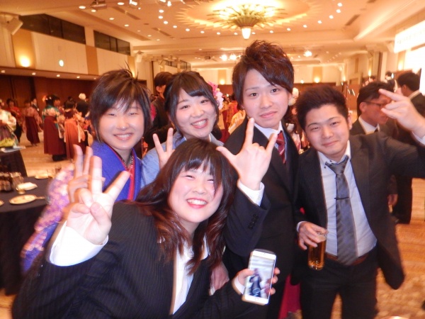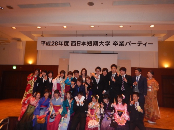 卒業式の後には卒業記念パーティー!皆さん、先生方や他学科の友人と写真をたくさん撮りながら西短での生活を振り返っていたようです。
