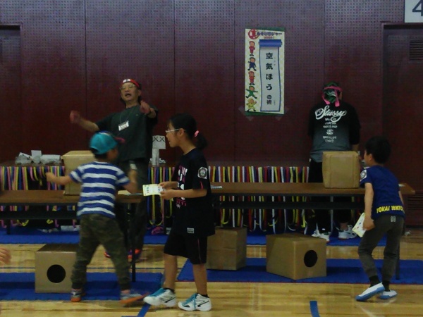 ゼミ生の4名は早朝から掲示物の準備にとりかかり、開始時間10時からは子どもたちやご家族の方に対し、説明ブースにて遊び方の説明や決まり事を話す役割を担当しました。(この説明を受けないとゲームに参加できないルールとなっています。)